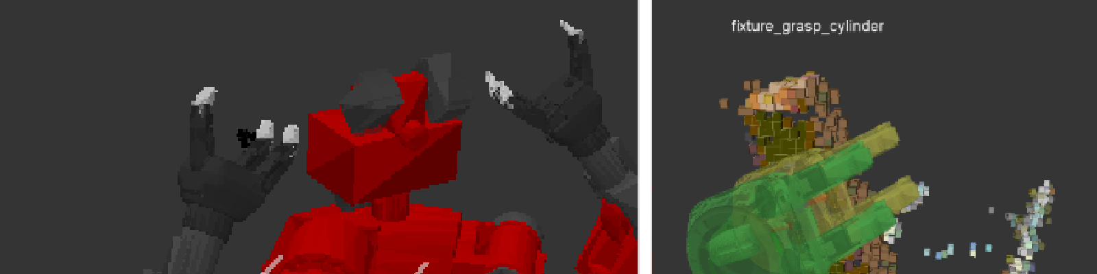 The goal of this project was to allow CMU’s CHIMP robot to grasp arbitrary objects quickly and autonomously (e.g., during the rubble manipulation task of the DARPA Robotics Challenge). I designed a “one-click fixturing” pipeline to generate and rank possible grasps requiring only a single click from CHIMP’s operator in the voxel environment. I then evaluated the success of this pipeline on a number of objects relevant to the DRC tasks and issued recommendations for further modifications to the system.